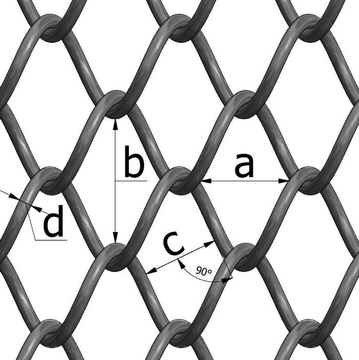 * Tyyppimerkintä: A/a x b tai c/d/k sarja A/silmä/spiraalilanka/kenttä: kenttien pituudet, silmäkoko ilmaistuna joko mitoilla a x b tai mitalla C
