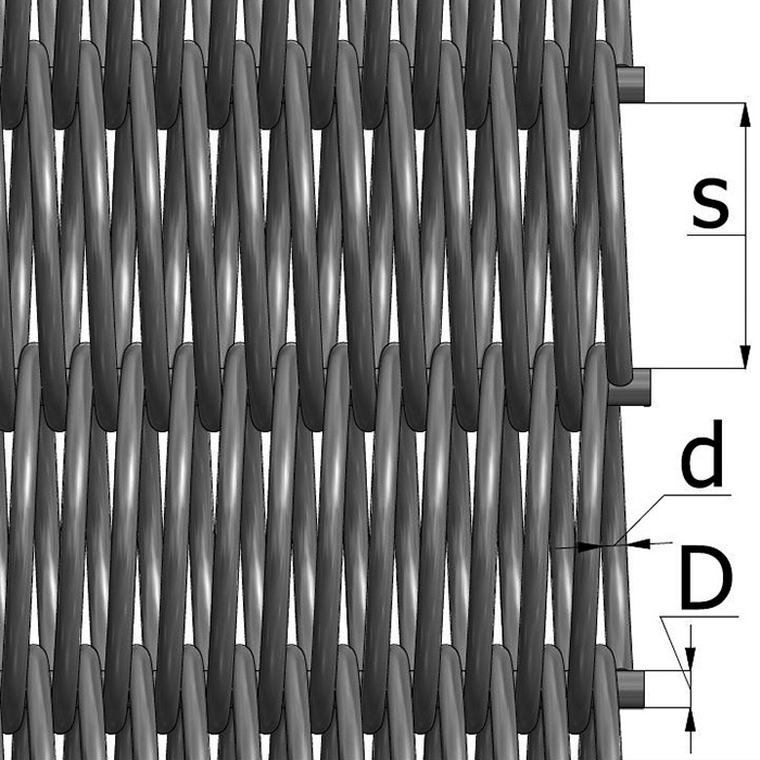 | Sauvaväli (s) mm | Spiraalin nousu (n) mm | Spiraalilanka (d) mm | Sauvalanka (D) mm |