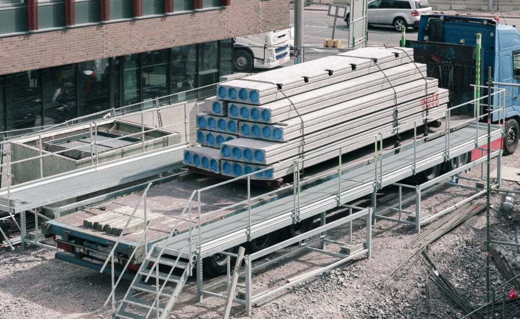 Materiaalien turvallinen lastaus ja purku kuorma-autoista ja perävaunuista edellyttää putoamisriskien minimoimista ja sujuvaa työskentelyä. Tätä varten Tammet on kehittänyt vakaan ja ergonomisen elementtipurkutelineen.