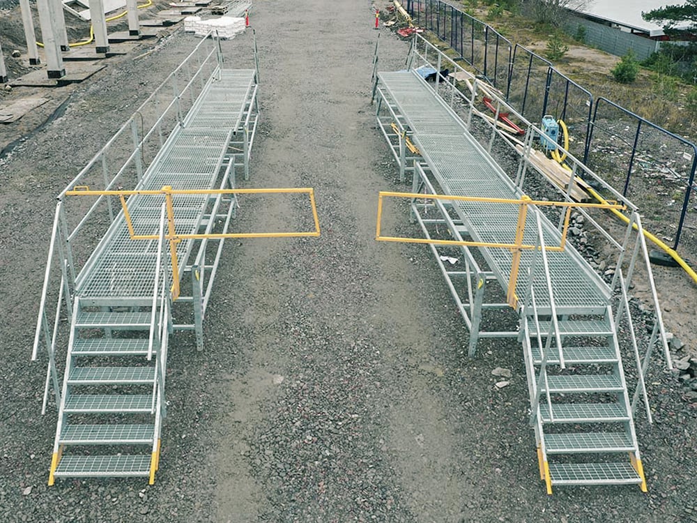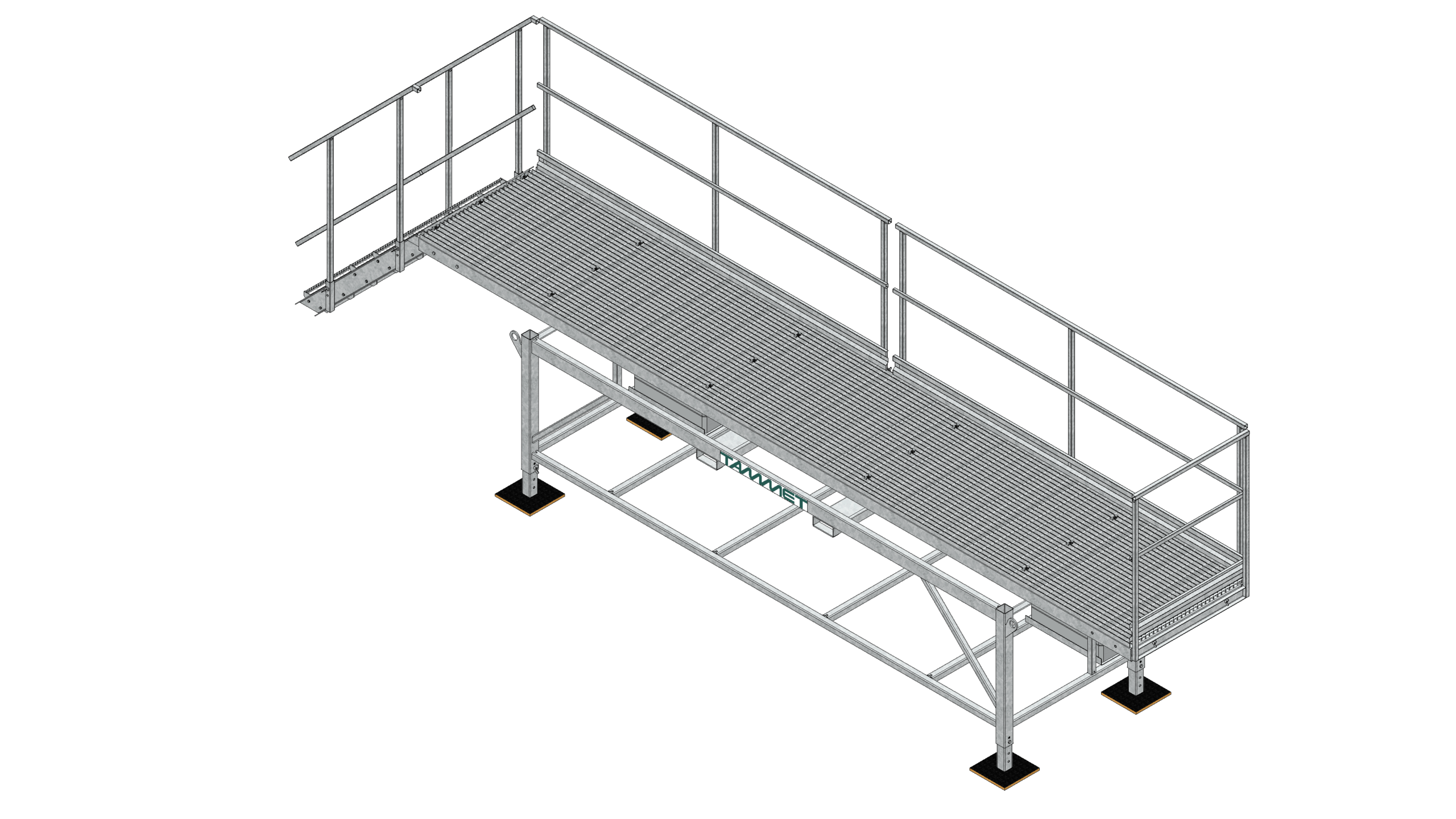 - Säädettävä kulkutaso, turvatasoritilä ja integroidut kaiteet