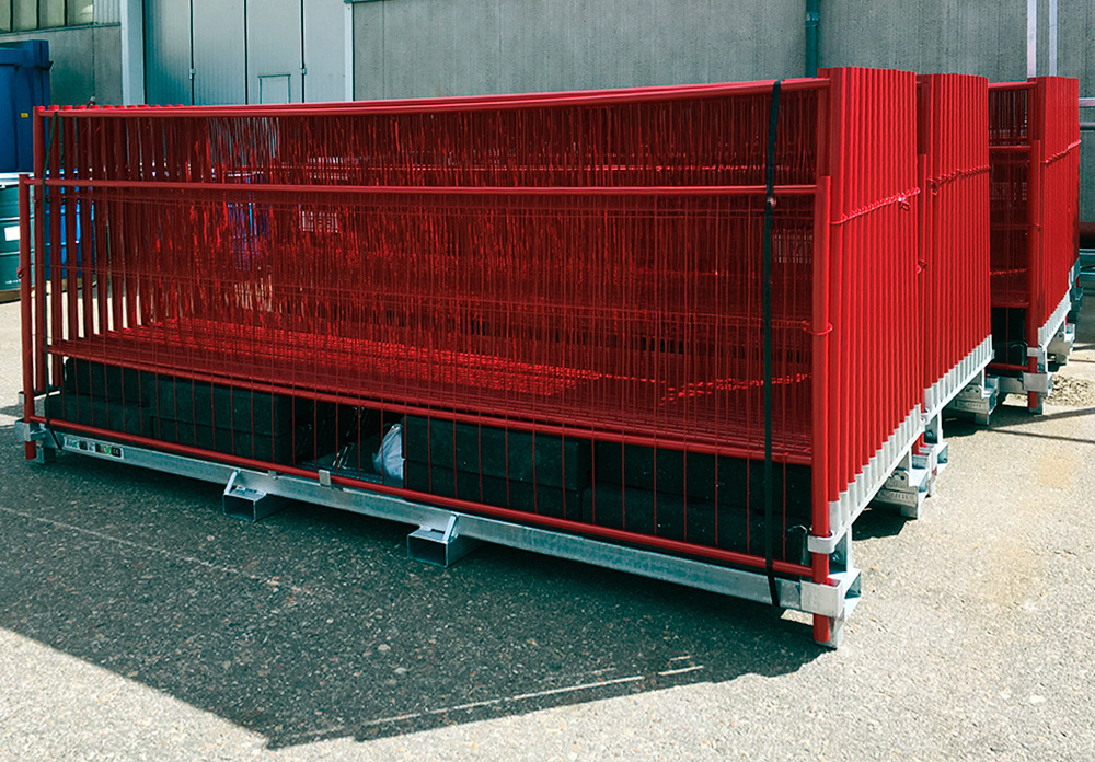 Combi-kuljetusteline tekee aitojen pystytyksestä ja logistiikasta erityisen tehokasta. Yhdestä telineestä löytyvät kaikki tarpeelliset aitaelementit, kiinnikkeet ja betoni- tai muovijalat, minkä ansiosta jopa 105 metriä työmaa-aitaa voidaan asentaa nopeasti, hallitusti ja ergonomisesti.